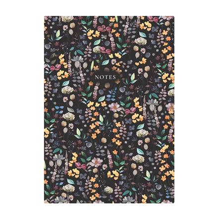 Jegyzetfüzet, A5, vonalas, 96 lap, TOPTIMER "Notes", fekete virágos