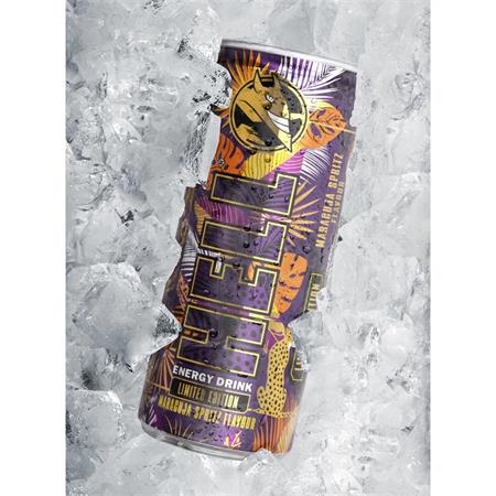 HELL Maracuja Spritz flavour Energy Drink - őszibarack-, maracuja- és tuttifruttiízű, koffeintartalmú, szénsavas energiaital hozzáadott vitaminokkal - pasztőrözött A terméket 18 éven aluliak nem vásárolhatják!