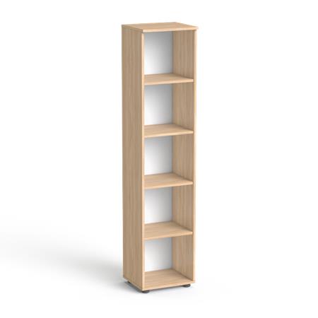 5 rendező magas, polcos szekrény méret: 1786x400x355 mm tető-, oldallapok és polcok vastagsága 18 mmhátlap: 3,2 mm vastag préselt lemez szín: tölgy lapra szerelve szállítjuk