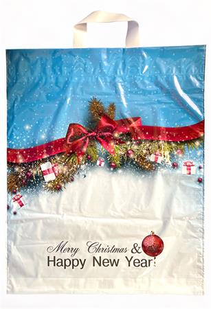 Szalagfüles táska, vásárláshoz, tároláshoz. Védi a termékeket. Szín: karácsonyi mintás Méret: 40x42 cm Kiszerelés 100 db/csomag