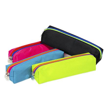 Színes poliészter tolltartó! -divatos, vegyes színekben, a szín nem választható (fekete, zöld, rózsaszín, türkíz) -anyaga: poliészter -cipzáros záródás -1 rekeszes kivitel -méret: 21 x 5 x 5 cm