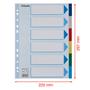 - elválasztólap visszafogott színkombinációkban - nagyméretű téglalapok az előlapon a tartalom feltüntetésére - 0,12 mm vastag PP alapanyag - hagyományos, 11-lyukú lefűzőrész - 6 színes fül a könnyű rendszerezéshez - megerősített lefűzőrész az előlapon